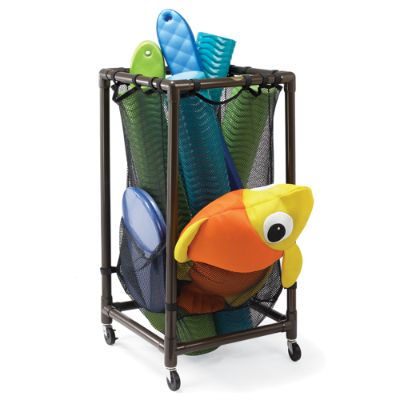 The storage bin is one of the best choices if you want to keep anything in your pool area. The most common pool toy storage material is fabric. These things will help you in keeping the things that you have spent in the pools with your child during the summer vacations. Rolling pool toy storage cart 3 bin 42 w x 26h easier height for kids reach. Use these mesh storage bins to keep swim goggles, beach balls, floats, and other swim toys and accessories out from underfoot and where you can easily find them.